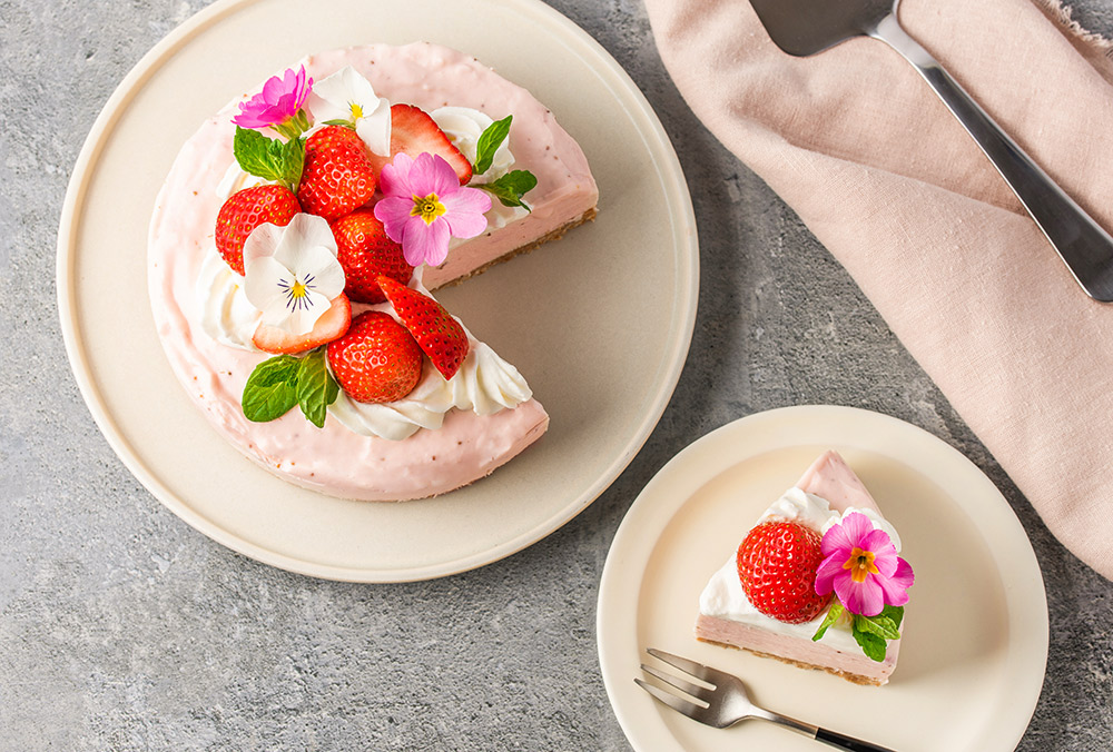 いちごの甘酸っぱさと、チーズのコクがやさしく広がるレアチーズケーキ。砂糖を加えることで酸味がまろやかになり、全体の味わいがバランスよく整います。また、なめらかな口どけややわらかな食感を引き出すのも砂糖の大切な役割です。見た目も華やかで、母の日の特別な一日にぴったりの一品です。