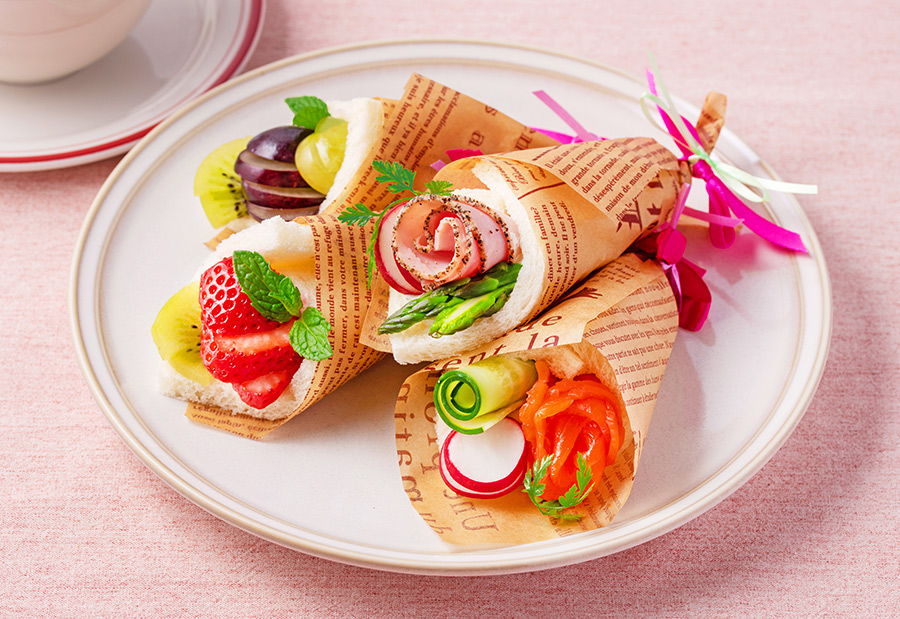 写真映え抜群の野菜やフルーツを花束のように飾り付けた、華やかなサンドイッチです。朝食にもおつまみにもなる手軽さと、食べられる花束という遊び心が魅力。子どもと一緒に作れるのも、このレシピならではです。難しい工程がなく、盛り付けのアレンジを楽しみながら作れるので、「料理が苦手」という方にもおすすめです。