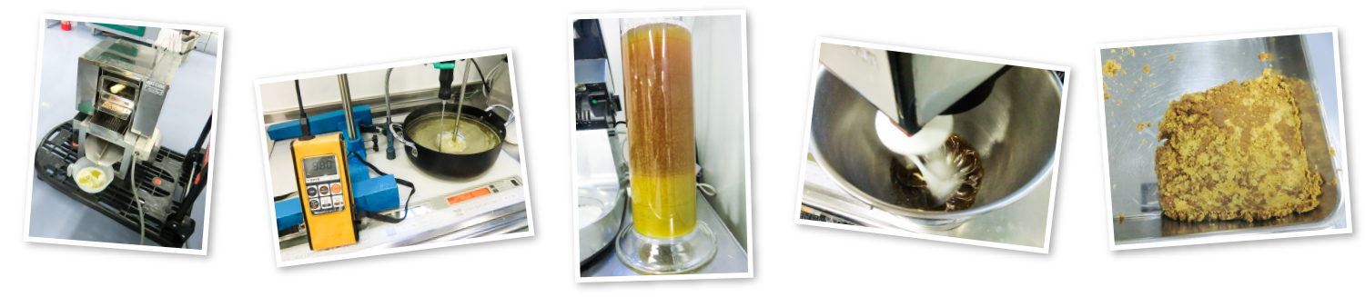 一方、黒糖はサトウキビのしぼり汁をそのまま煮詰めていく製法で、精製をほとんど行いません。さらに、高温で一気に加熱・濃縮し、糖みつ分を含んだまま、固形や粉末にするため、糖やアミノ酸が反応し、さまざまな香り成分が生成されます。この過程で、甘い香りや香ばしい香り、そして黒糖特有の香りが引き出されていくのです。